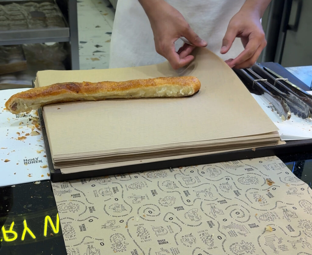 Our first stop was at Holy Burek for the famous Burek. It is essentially this pastry that’s soft on the inside, kind of flaky on the outside and stuffed with something. These particular ones are a little longer than a foot long and are roughly 7-9 euros. Our guide chose to get the spinach and cheese one and we each got a piece that was about 2-3 inches. I’m not really a spinach person but I’ll eat it sometimes. We didn’t have vegetarians in the group so I’m not sure why we didn’t we get the meat options. They had lamb and chicken as options and those sound a lot better to me. We ended up going back after our tour to try the other versions, which were good and a lot better than the spinach one.